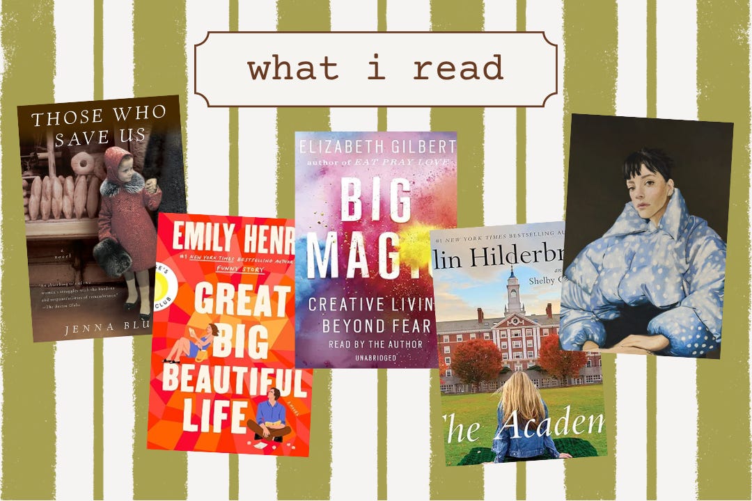 a holocaust story i devoured, a workplace enemies-to-lovers, a creative brain reset reread, boarding school chaos, and the west end girl i basically live with now